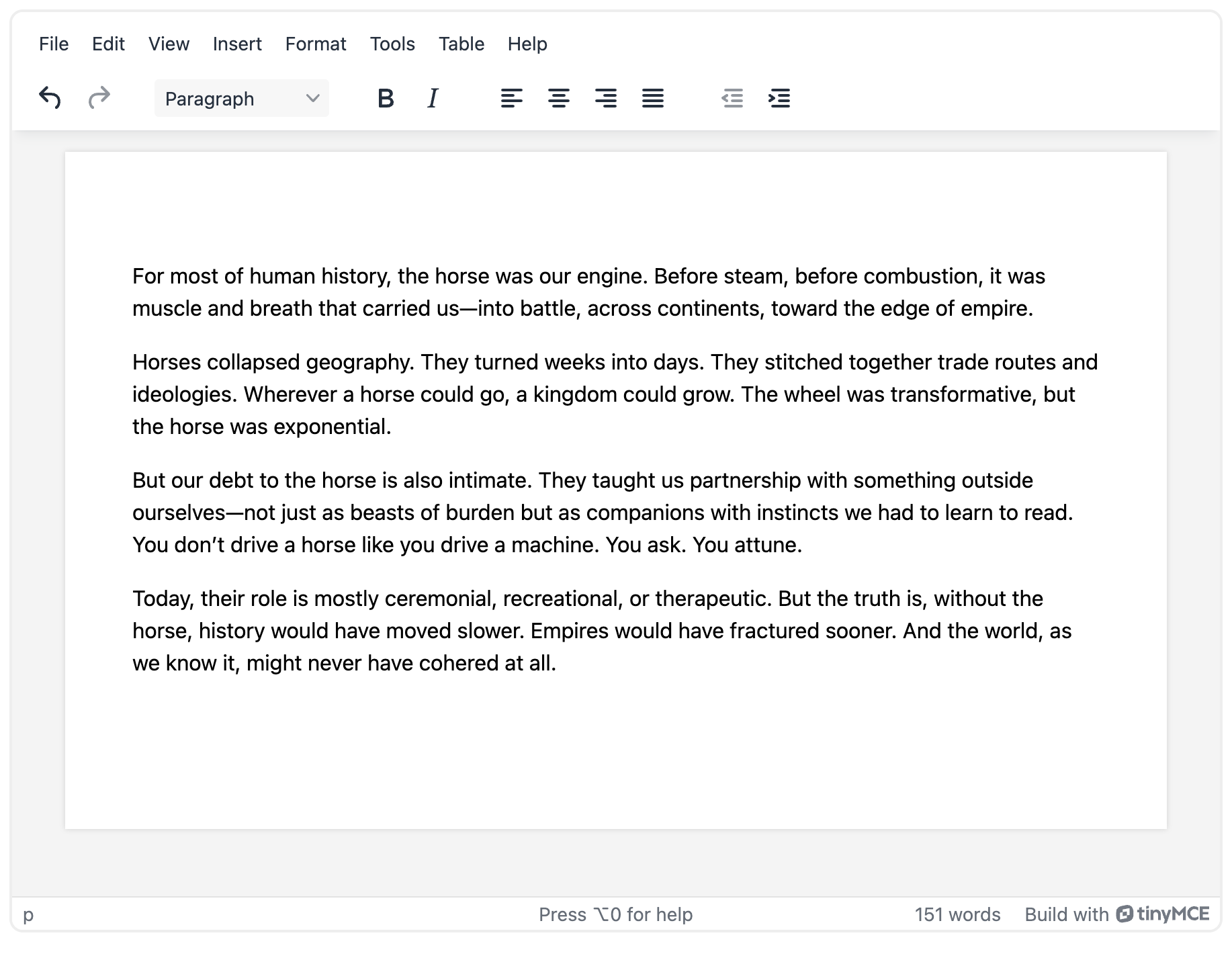 For most use cases in the rich text editor TinyMCE, the default line height, paragraph spacing, and margins are functional and useful. However, there are some types of apps that require special spacing, like document management systems. Customizing the various types of spacing in TinyMCE is easy, and the editor even has some built-in content CSS to quickly customize specific use cases.